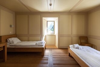 Le nostre esclusive camere, ricavate in un'antica torre, offrono un'esperienza unica nel loro genere. Alcune vantano suggestive porzioni di muro in pietra a vista, testimonianza della storia millenaria dell'edificio. L'arredamento in legno minimalista crea un'atmosfera calda e accogliente.